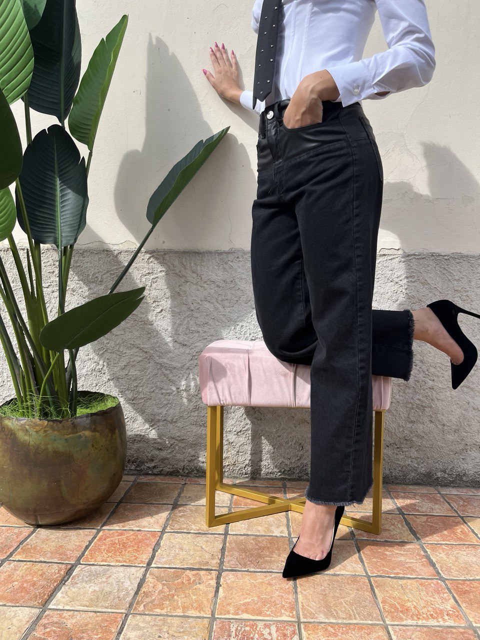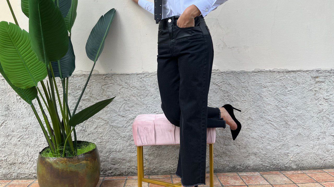 Jeans Baggy a Vita Alta Stile Vintage Lavaggio Medio